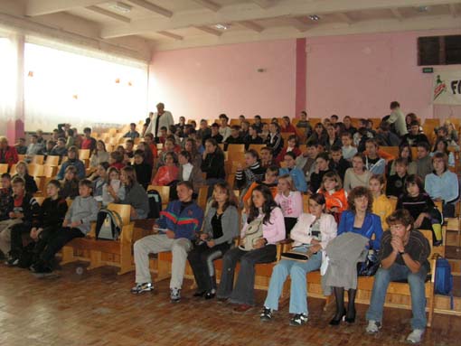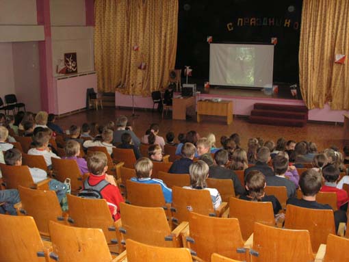 Нам было выделено 2 урока – 5-ый и 6 - ой. На 5 - ый было решено пригласить 5 - ые и 6 – ые классы, а на 6 - ой – 7 - е и 8 - е. Отмечу, что простых желающих посмотреть на всё это так же набралось немало.