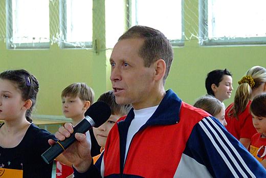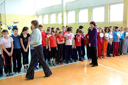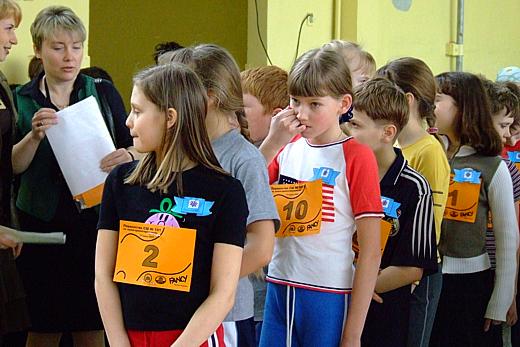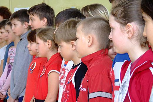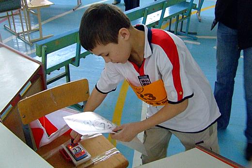 Старт для удобства был разделен на 2 части. В 12.00 стартовали 4 и 5 классы, а в 14.00 мерялись силами 6 и 7. По регламенту всё как полагалось – полуфинал и финал. Ближе к старту всё удалось настроить и протестировать. Радовало техническое оснащение этого старта. Молчу даже про SI отметку, понравился экран с оперативным выводом результатов в удобном графическом интерфейсе и звуковое оснащение. Как только обе стрелки моих ходиков смотрели строго в небо, в дверном проеме появились будущие участники. Несколько команд, возможно 5 – 6 из 4 и 5 – х классов. Стройными рядами они зашли в зал и выстроились напротив лабиринтов и испуганными глазами стали смотреть по сторонам, на судей, на лабиринт и объектив моей камеры. А В.С. Канарский уже начал свою приветственную речь. На экране, словно по взмаху волшебной палочки, в унисон его словам стал транслироваться ролик об ориентировании. И в этот момент я заметил первые искорки в глазах. Им интересно? Суббота, занятия кончились, нужно идти домой, а им интересно? Я ничего не понимаю? Как завороженные смотрели они на экран. Конечно не все, кто – то ковырял в носу, кто – то просто болтал, но было приятно видеть, что это кому – то интересно.