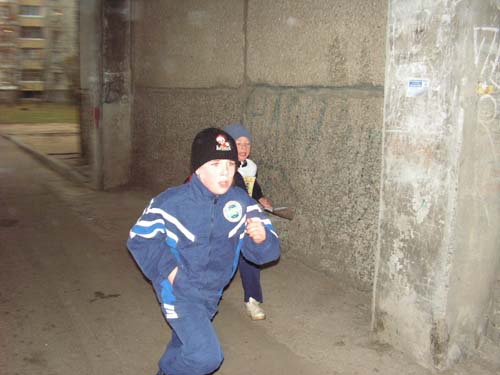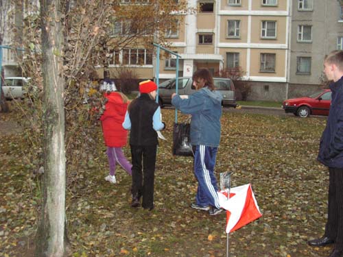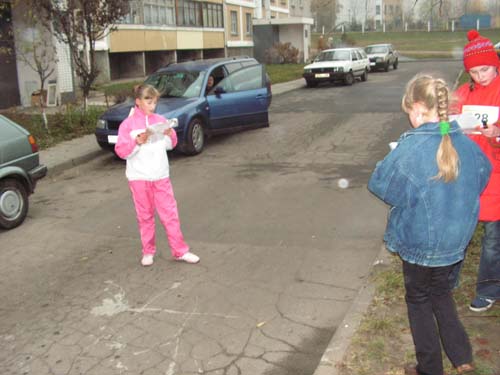 Я не смог отказать себе в удовольствии посмотреть, как будут бегать школьники, поэтому взял фотоаппарат и пошёл на дистанцию. Скажу кратко: было весело, как участникам, так и мне. Интерес чётко просматривался на лицах бегающих по району. Но некоторым участникам карта больше мешала, чем помогала искать запрятанные злобным постановщиком КП. Звучит глупо, но были и те кто просто спрашивал, где, мол, стоит такой – то КП, а ему отвечали точный адрес (дом и подъезд). Или устно рассказывали местонахождение последнего. Для многих ребят это их родной район, и все его дворы они знают досконально. Всем всё понравилось, и призы от Fansy, и организация. Как мне сказала одна из учителей, по большому секрету, её класс все в один голос говорили, что хоть что – то школа провела нормально.